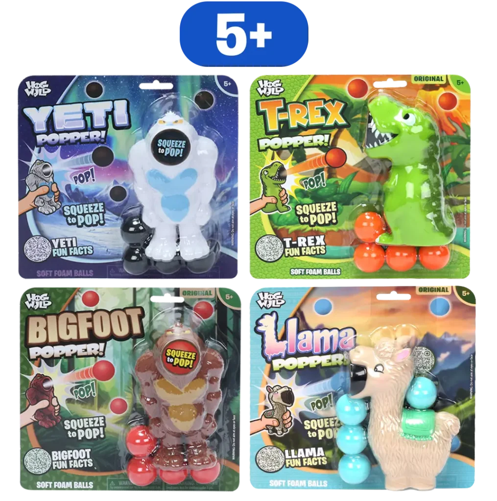 The original Hog Wild Squeeze Poppers are bringing their signature silliness to your favorite celebrations with a festive lineup that includes Santa, Elf, Reindeer, Snowman, Nutcracker, and even a Chocolate Easter Bunny!