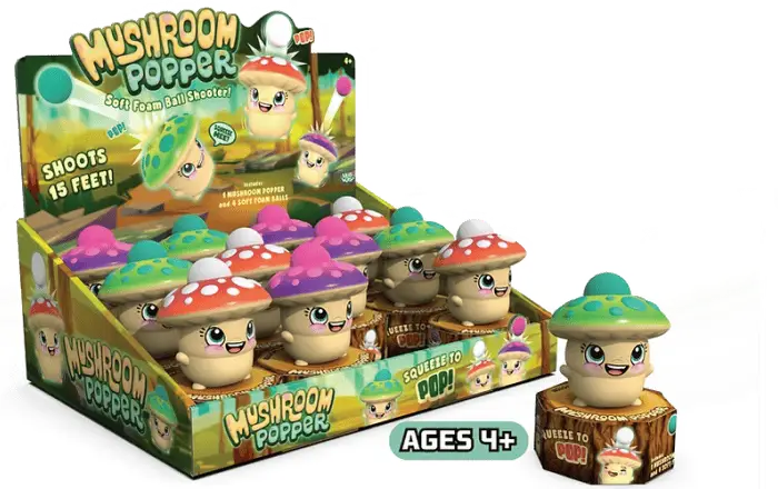 These adorable Mushroom Poppers are ready to bring smiles and pop-tastic good times. Perfectly packaged on their own little logs, they’re as charming as they are entertaining. Each popper comes with 4 soft foam balls for endless fun. Displayed together, they create a vibrant and eye-catching impulse buy that’s impossible to miss!