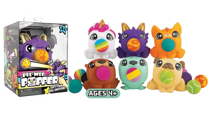 Includes: 1 Pee Wee Popper and 4 soft foam balls